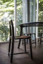 Designer Valentin Loellman was selected to sculpt and shape the restaurant’s tables from solid wood. “I treat materials like living organisms, with shapes and movements seeming to emanate from the stroke of a brush. My aim is to create rooms that are timeless, welcoming and tranquil, while exuding personality and authenticity. Each of the rooms created for Maison Aribert is unique and slightly different. And rather than being overly visible and monopolizing the interior space, I like a room to engage in a dialogue with the latter, to exist solely for a purpose and to give every guest a feeling of enduring personal comfort.