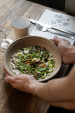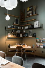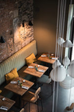 Articulé autour d’une généreuse table d’hôte surplombée d’un lustre de 80 opalines blanches rappelant les lampes de maison du début du siècle dernier, la salle de restaurant propose 35 places, où les clients se répartissent selon l’envie, entre banquettes confortables, tables individuelles et espace privatif en mezzanine. L’ancrage au territoire et sa culture, n’a pas été oublié.